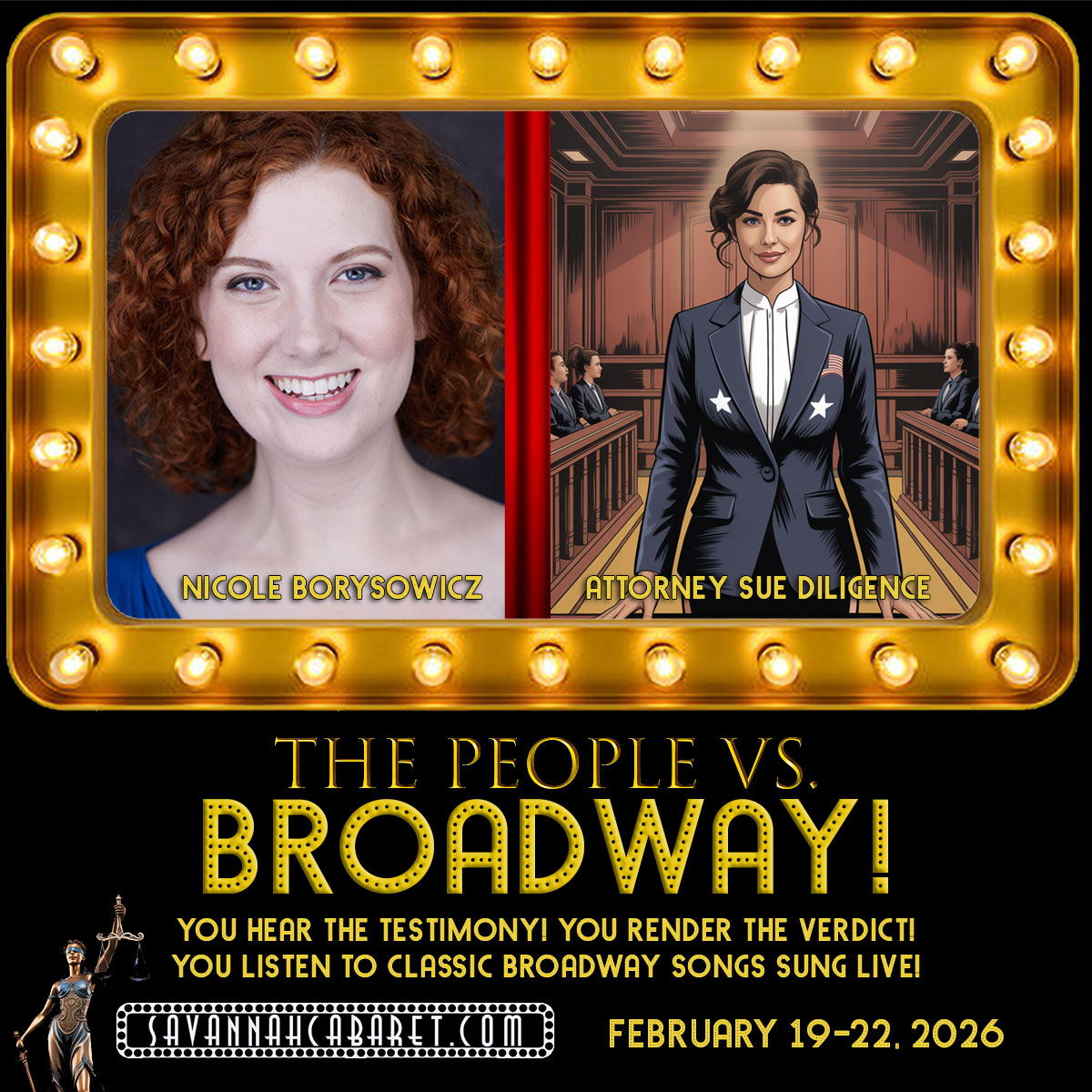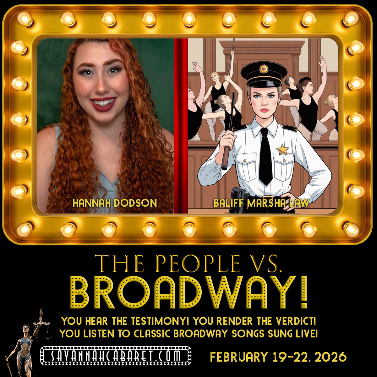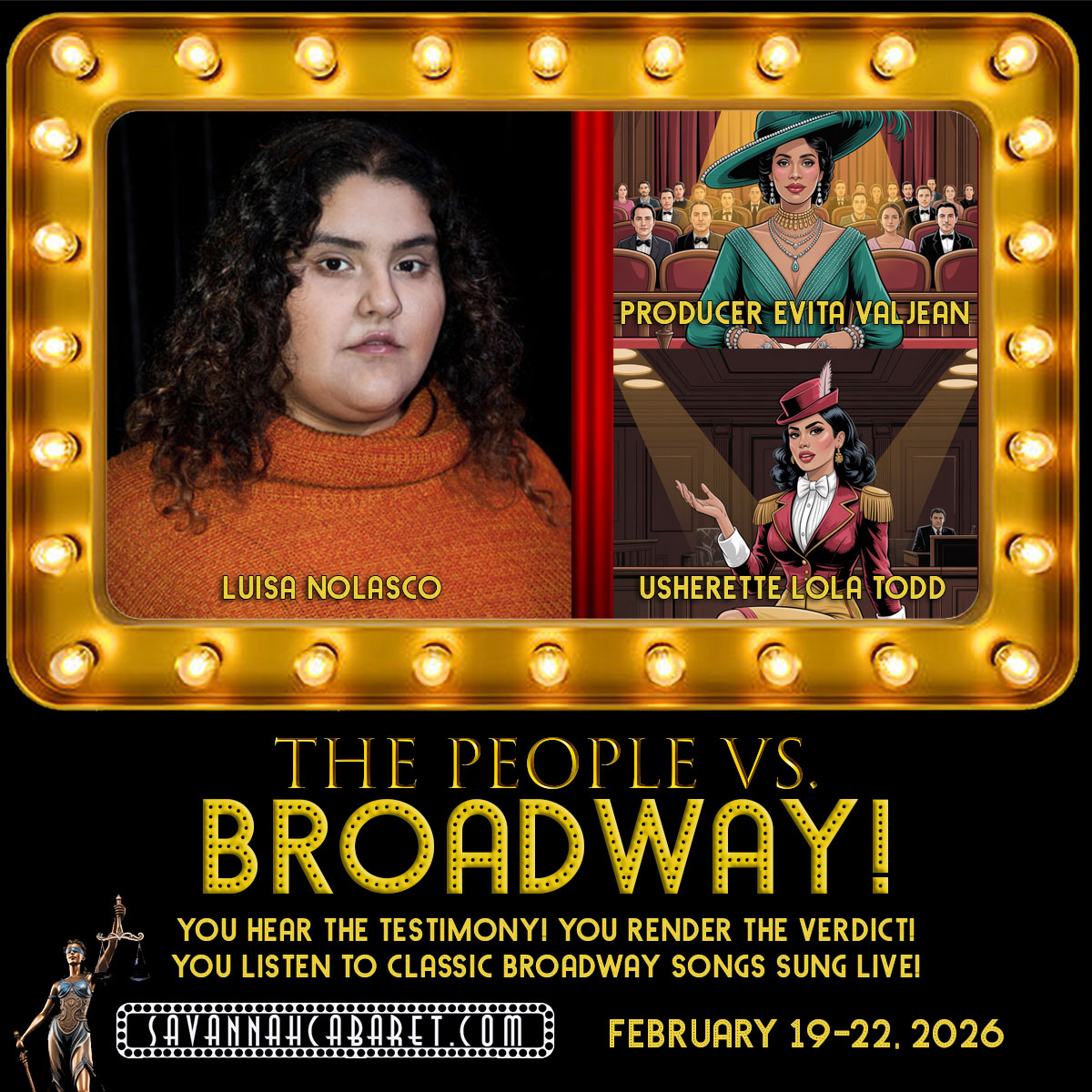 From of the creators of the “Murdered by…” and “Christmas in Mistletoe Falls” productions comes an all-new, originally outrageous musical courtroom show, “The People Vs. Broadway!”