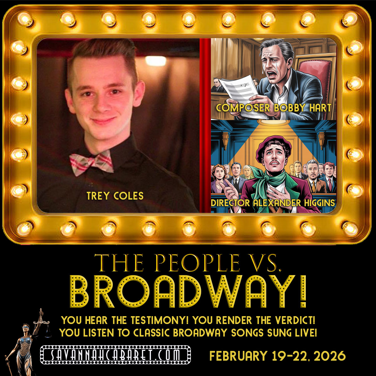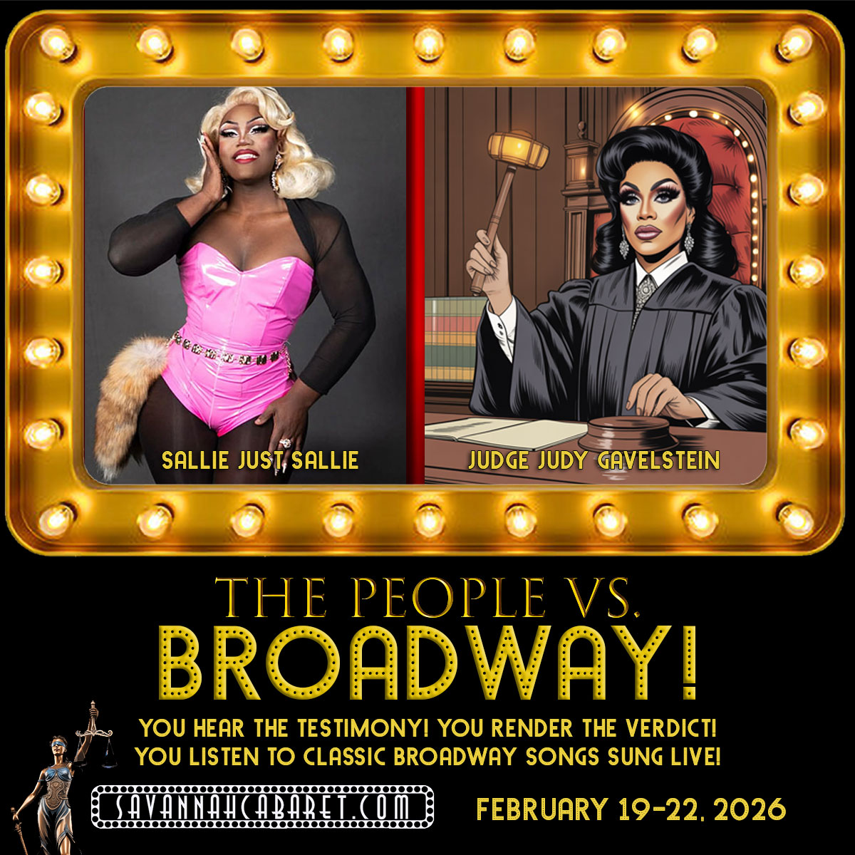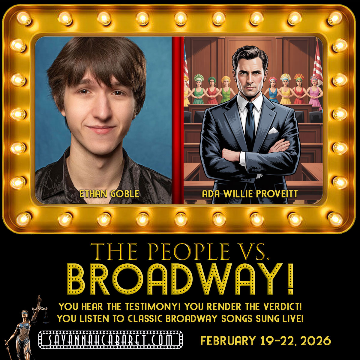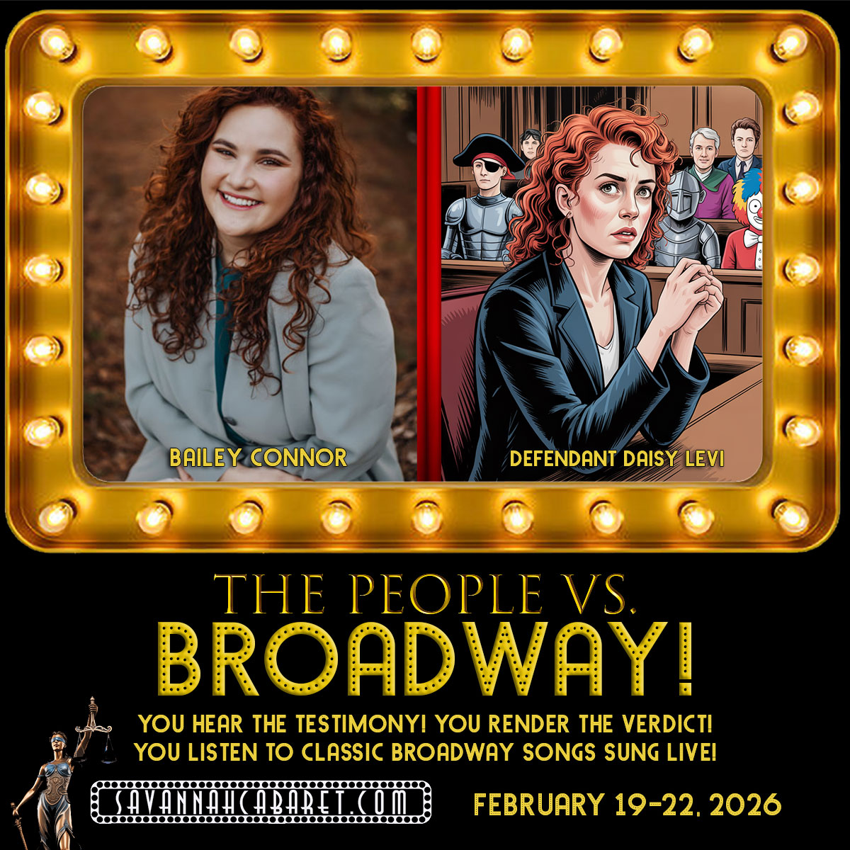 From of the creators of the “Murdered by…” and “Christmas in Mistletoe Falls” productions comes an all-new, originally outrageous musical courtroom show, “The People Vs. Broadway!”